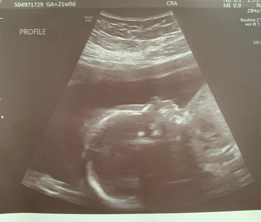 I was 21 weeks when we had our 20 week anatomy scan. It was so neat to see so many details of our baby as we hadn’t had an ultrasound since 8 weeks when baby looked like a little gummy bear! Everything looked great with baby’s development and he/she had a heart rate in the 150s and was just under a pound at 15oz putting them in the 70th percentile. Since we don’t want to know the gender, we had to close our eyes when the ultrasound technician got to the “between the legs part” of the scan. The funny part of the anatomy scan was that the ultrasound technician couldn’t get over our baby’s lips as apparently they have plump lips!